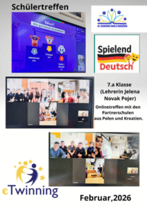 Dana 5. prosinca 2025. održana je međunarodna radionica „Deutsch lernen mit KI“ na platformi Zoom, koju je vodila učiteljica Željka Hutinski. U radionici su sudjelovali učenici i učitelji iz svih partnerskih škola uključenih u eTwinning projekt Deutsch kreativ mit KI, a cilj je bio vježbati njemački jezik, upoznati se s načinima korištenja umjetne inteligencije u učenju te kroz interaktivne aktivnosti poticati suradnju među učenicima različitih zemalja.