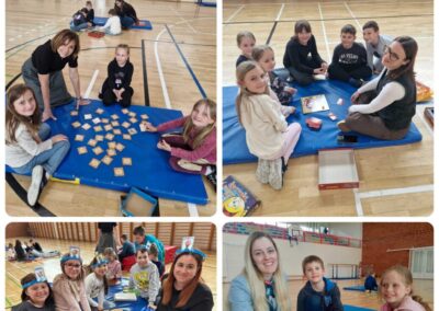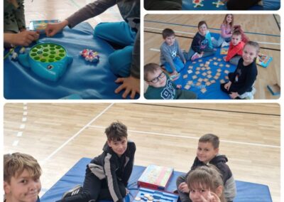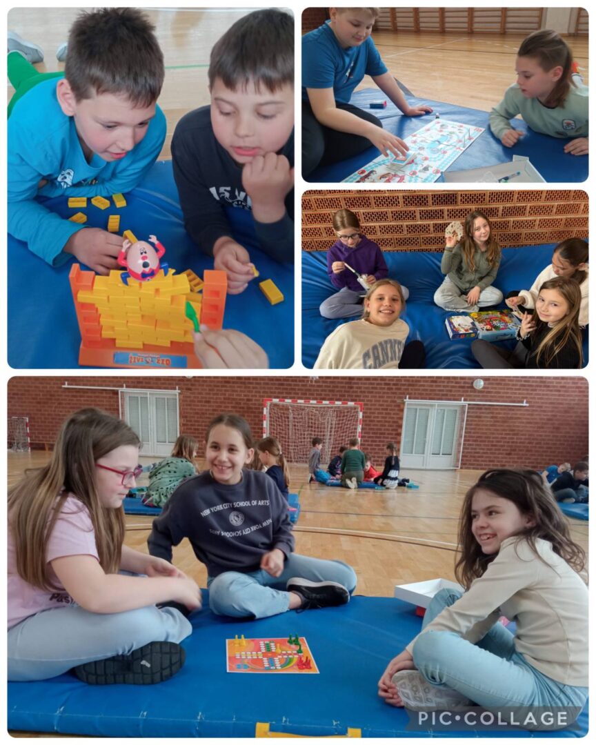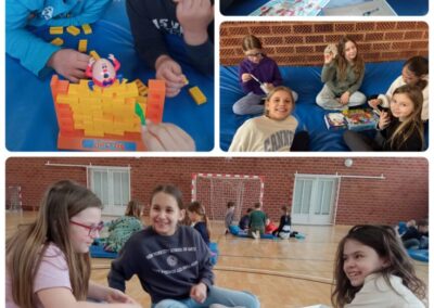 Nakon uvodnog razgovora svi smo se okupili u dvorani, gdje smo organizirali zajedničko igranje. Učenici su se podijelili u manje skupine, isprobavali različite igre, učili nova pravila i razvijali vještine suradnje, strpljenja i timskog rada.