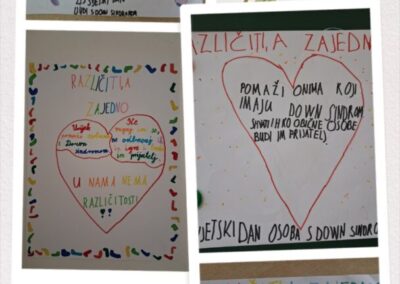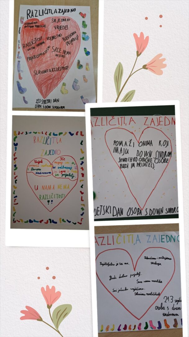 Za kraj, učenici su u skupinama izrađivali plakate. Na plakatima su prikazali što su naučili – poruke prijateljstva, prihvaćanja i podrške, uz šarene ilustracije i poznati simbol različitih čarapa koji predstavlja jedinstvenost svakog pojedinca.