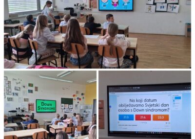 Sat smo započeli gledanjem kratkog edukativnog filma „Što je Down sindrom?“ koji je na jednostavan i djeci razumljiv način prikazao svakodnevni život osoba s Down sindromom. Učenici su s velikim interesom pratili sadržaj, a film je bio odličan uvod u daljnji razgovor.